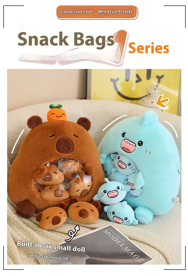 The Snack Bag Capybara Doll combines the lovable characteristics of capybaras with the practicality of a pillow, creating a multifunctional accessory that caters to both emotional and physical comfort. Its soft texture and ergonomic shape make it perfect for hugging, lounging, or using as a decorative accent. Let’s explore the key features and benefits of this delightful plush toy pillow.