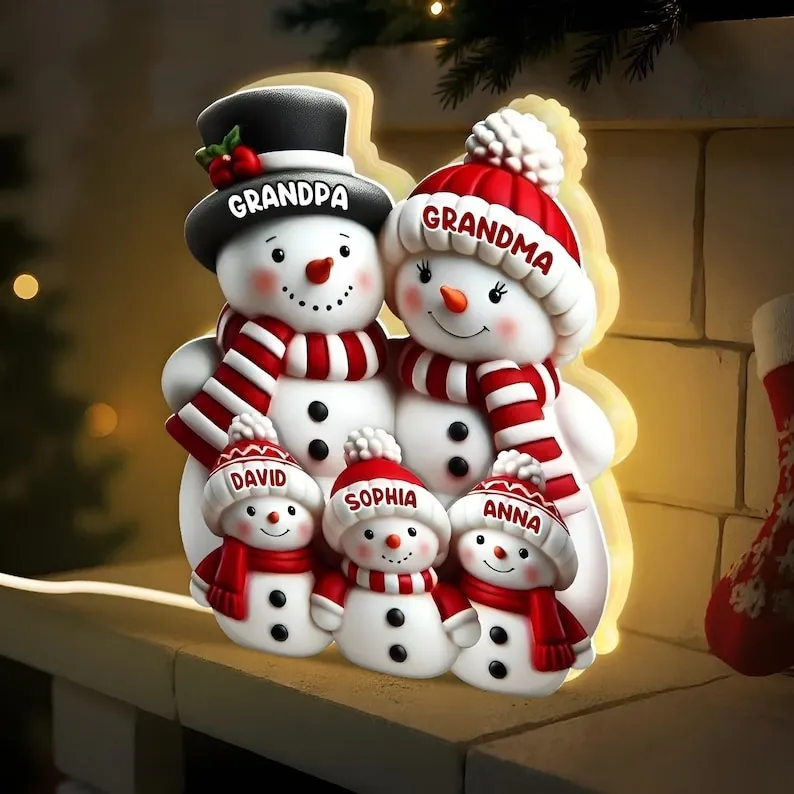 Snowman Family Acrylic Light Box – Warm Festive Glow for the Holiday Season