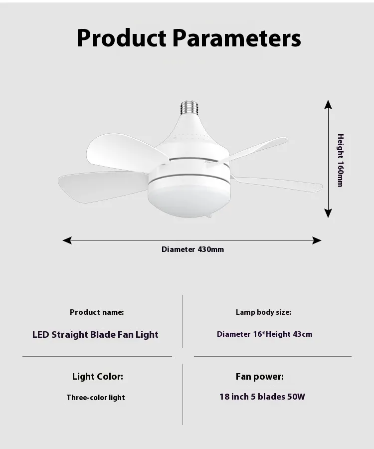 The Socket Ceiling Fan Light combines cooling airflow and illumination in a single, efficient unit that enhances comfort and lighting throughout your home. Easy to install, durable, and energy‑friendly, it’s the ideal choice for modern living spaces where practicality and performance go hand in hand. Enjoy balanced air movement and bright, reliable lighting without the need for multiple fixtures — perfect for living rooms, bedrooms, and beyond.