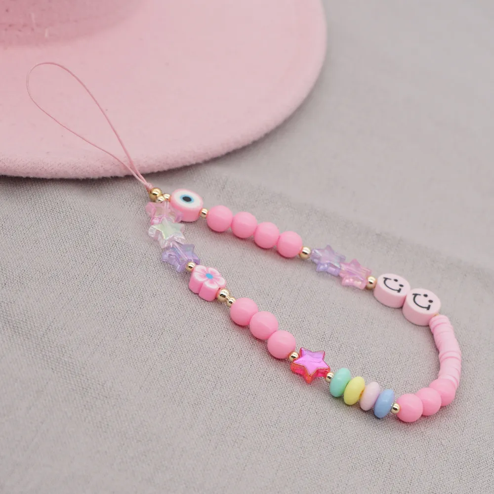 Soft Pottery Mobile Phone Rope Hanging Jewelry Five-pointed Star Beaded Mobile Phone Chain Female