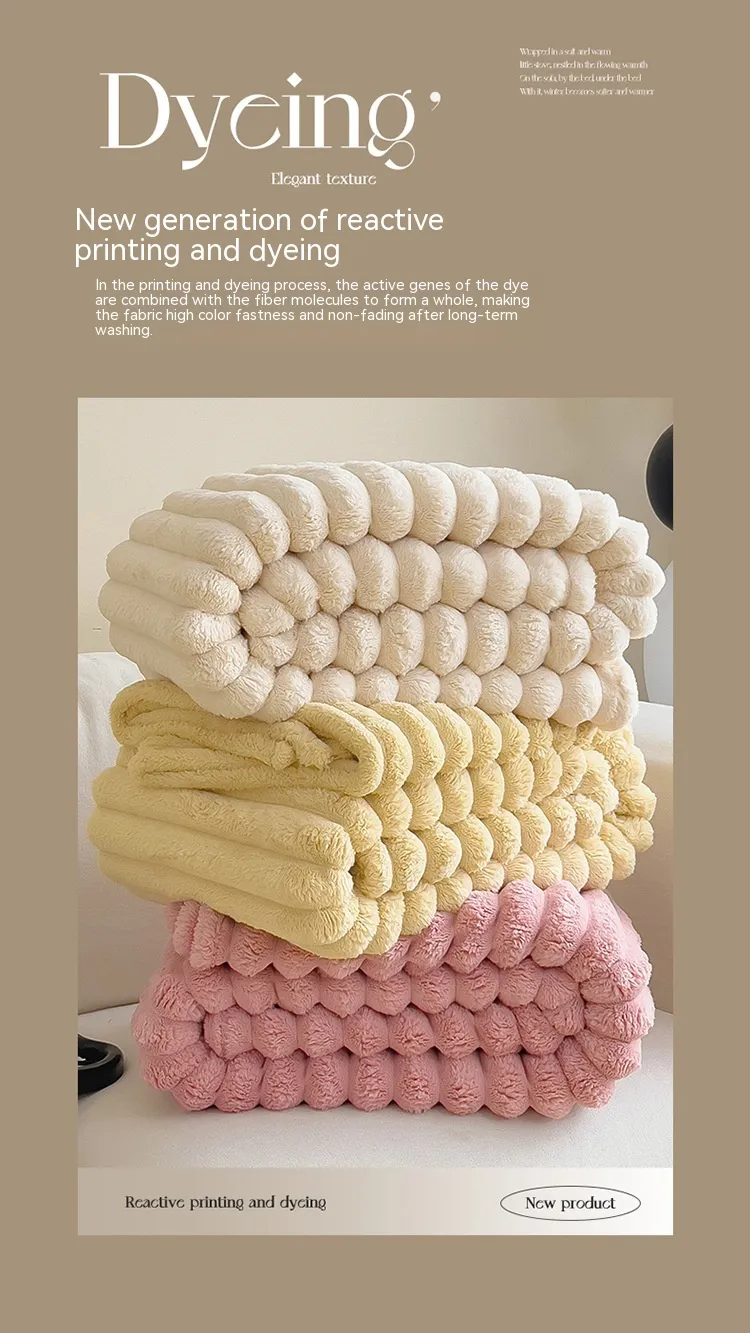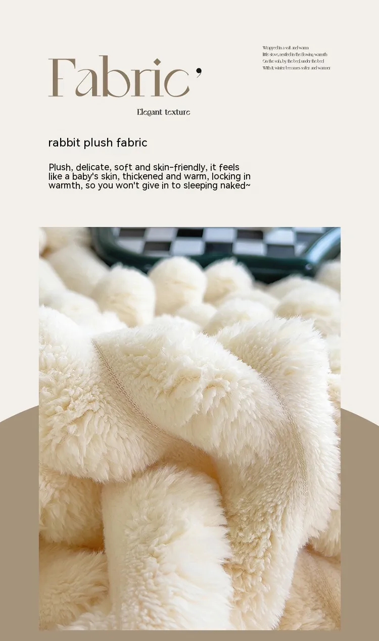 Superior Warmth and Softness: Embrace the cozy embrace of our Luxurious Bubble Faux Rabbit Fur Blanket, a premium blanket with AB double-sided thickening designed to infuse warmth into your life.