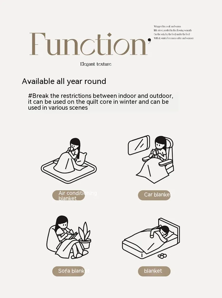 Whether you're curled up with a book at home, enjoying a picnic, or need that extra comfort while traveling, this blanket is the perfect companion. Its lightweight design makes it effortlessly portable, so you can carry comfort with you to any destination.