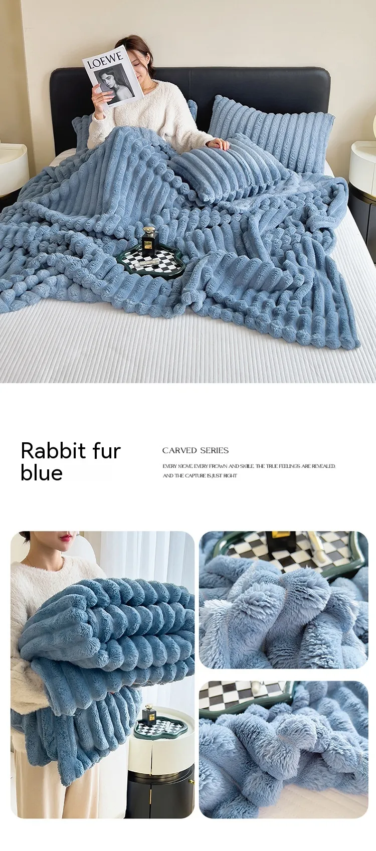 Soft Wind Bubble Velvet Blanket Warm Solid Rabbit Fur Blankets Double-sided Thickening Cover Throw Warm Fur Blanket