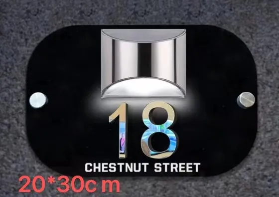 The Solar Door Plaque is a sleek, self-powered outdoor sign that uses integrated solar technology to illuminate house numbers or property identifiers automatically after dark. It provides a practical and elegant solution for making entrances easy to identify while enhancing the overall appearance of a home. Unlike traditional plaques that rely on external lighting or wiring, this plaque operates independently, drawing energy from sunlight during the day and delivering soft illumination at night.