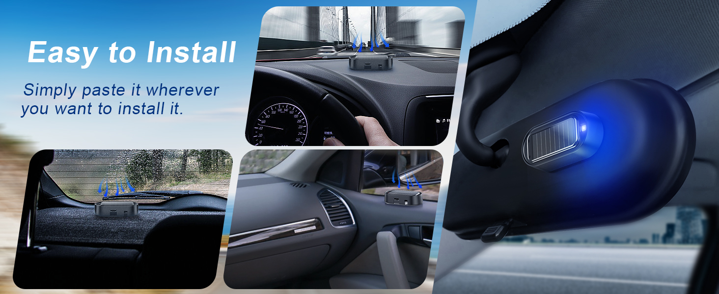 The SolarGuard™ features a small, discreet body that sits easily on your dashboard or behind the windscreen. Its built-in solar panel charges automatically during the day, powering the bright blue or red flashing LED at night. With no wiring required, installation takes less than a minute—simply place it where it receives sunlight.