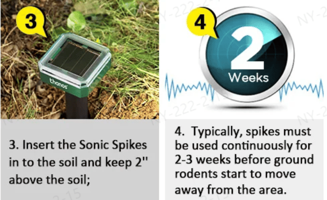 Q1: Will this get rid of a groundhog?A1: Yes, it will help and scare away the groundhog due to they emit ultrasonic waves beneath the ground. Q2: They make a loud buzzing sound. Is this normal?A2: They should emit a sound so that is totally normal. They should be far enough in the ground so the sound is not bothersome to you. Q3: Will it bother birds? I'd love to rid the yard of squirrels but not the birds.A3: We have tons of birds and no birds were bothered. Q4: Will it repel California Ground Squirrels?A4: The mole and gopher repellent stakes emits a pulsing buzzing into the surrounding soil so they are effective against squirrels and basically any pest that burrows underground. Q5: Does it keep snake away?A5: The device is designed to scare away rodents that arrange their burrows in the ground (moles, gopher, field voles, etc.), and also this product repels snakes. Thank you for taking your time on our products. We do as much as we can to offer you our best products. 🔥Click On "ADD TO CART" To Get Yours Now!We love environmental protection