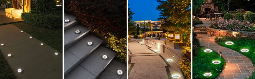 - đź’ˇDurable Waterproof Solar Disc Light:Â Equipped with a stainless steel lamp shells, waterproof durable design, and external waterproof switch, these solar buried lights are durable enough to withstand harsh weather.