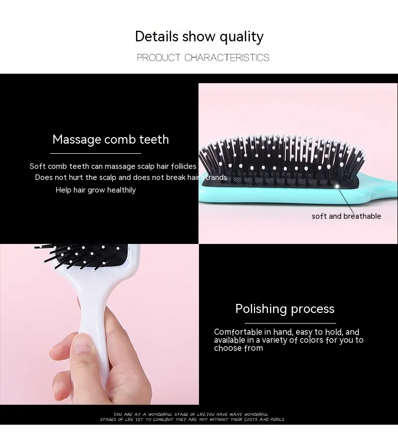Crafted from high-quality, durable materials, the airbag cushion provides flexibility and resilience, ensuring the comb remains effective and comfortable even with frequent use. The soft-tipped bristles are designed to untangle hair without pulling, making the process pain-free and suitable for both wet and dry hair. Whether you’re dealing with morning bedhead, post-shower tangles, or simply maintaining smooth hair throughout the day, this comb is a versatile and practical tool for maintaining tangle-free, healthy hair.