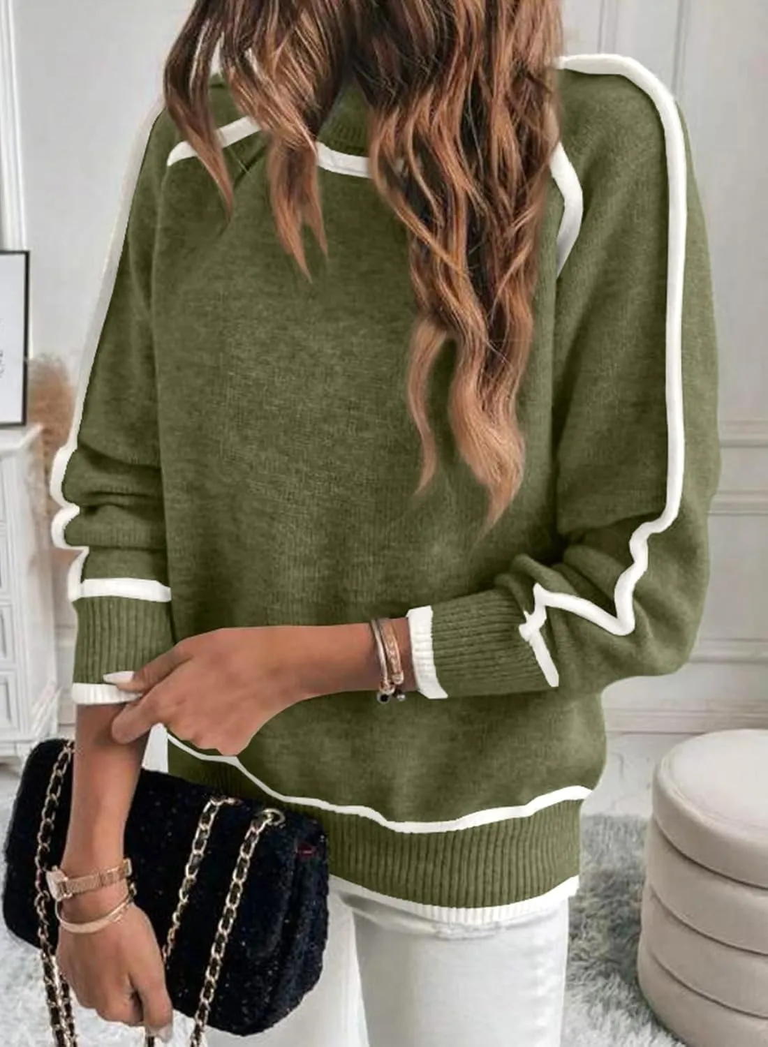 This Autumn and Winter Solid Color Matching High-necked Casual Knit Top is designed for comfort and style during cooler seasons. Its versatile high-neck design and color-matching pattern make it an ideal choice for both casual and semi-formal occasions.