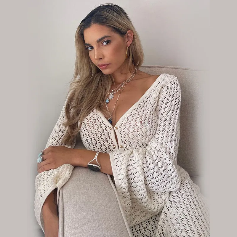 Solid Color Knitted Hollow-out Beach Swimsuit Blouse Sun-proof Women's Skirt