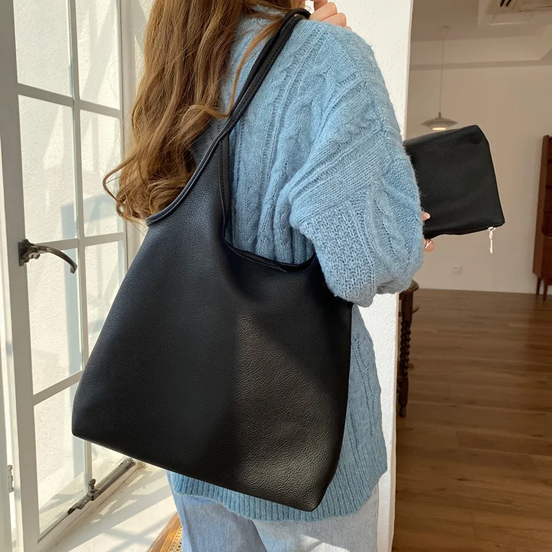 Solid Color Lightweight Pu Soft Leather Hand Bag