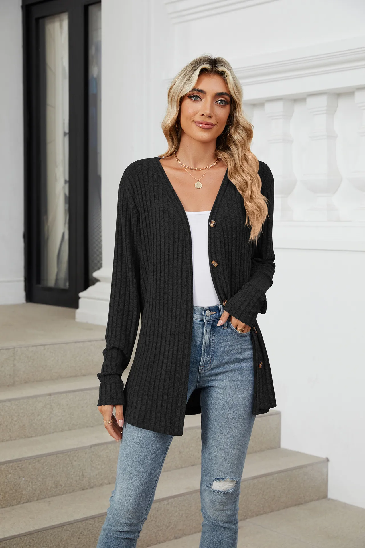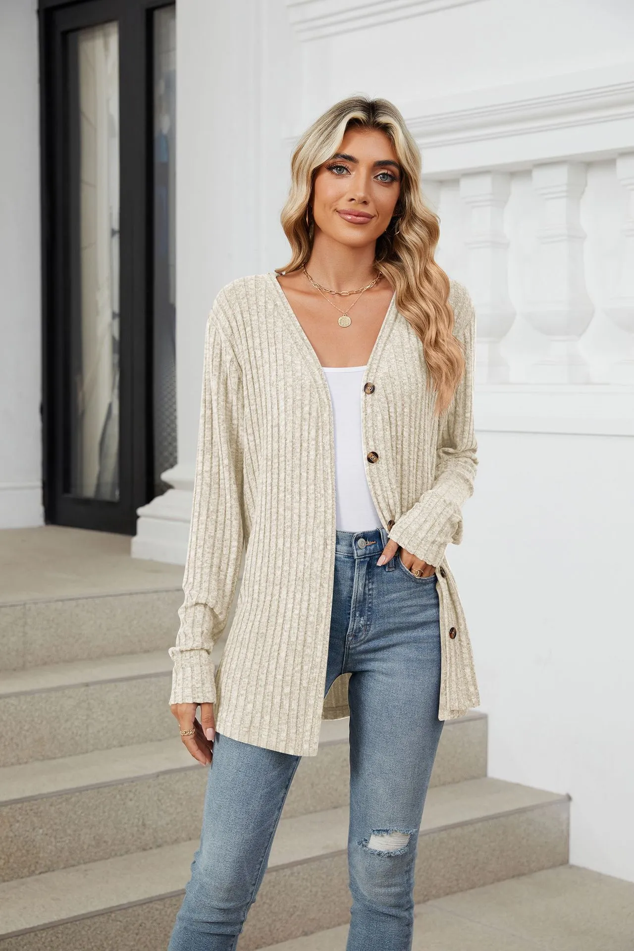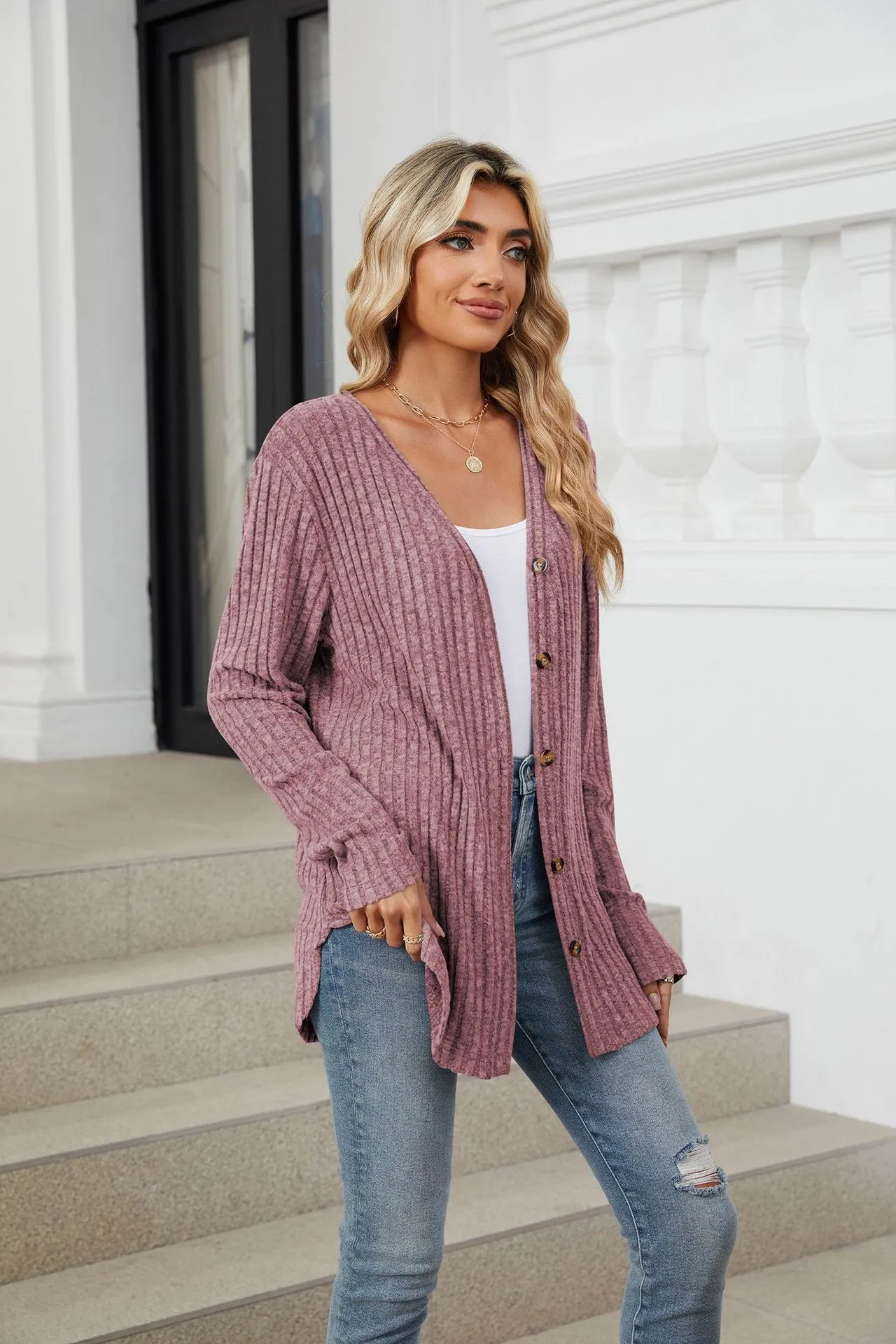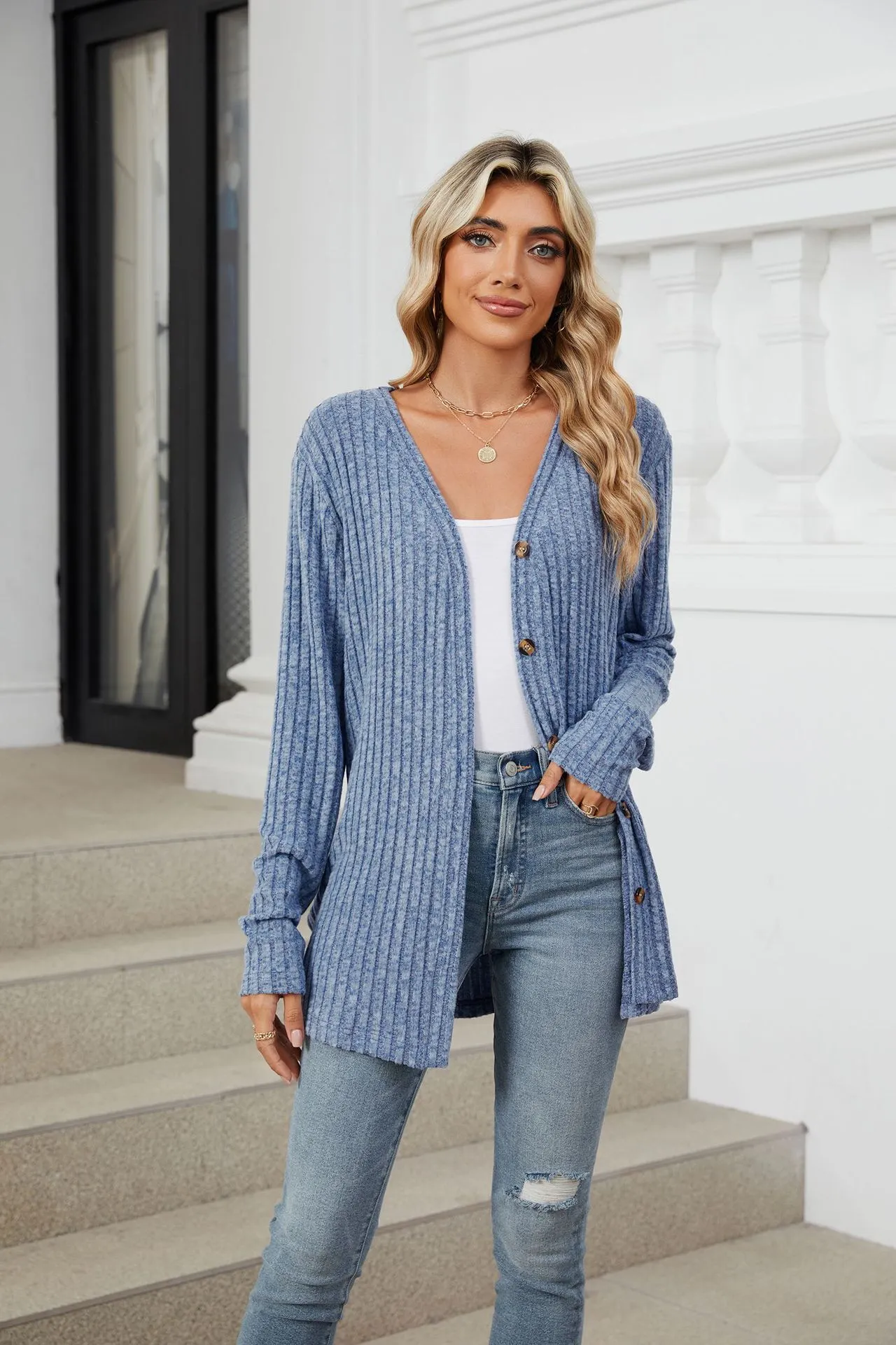 Home › Plants, Gifts, Toys & More › Gift-tree-solid-color-long-sleeve-button-cardigan-knitted-and-emerized-coat