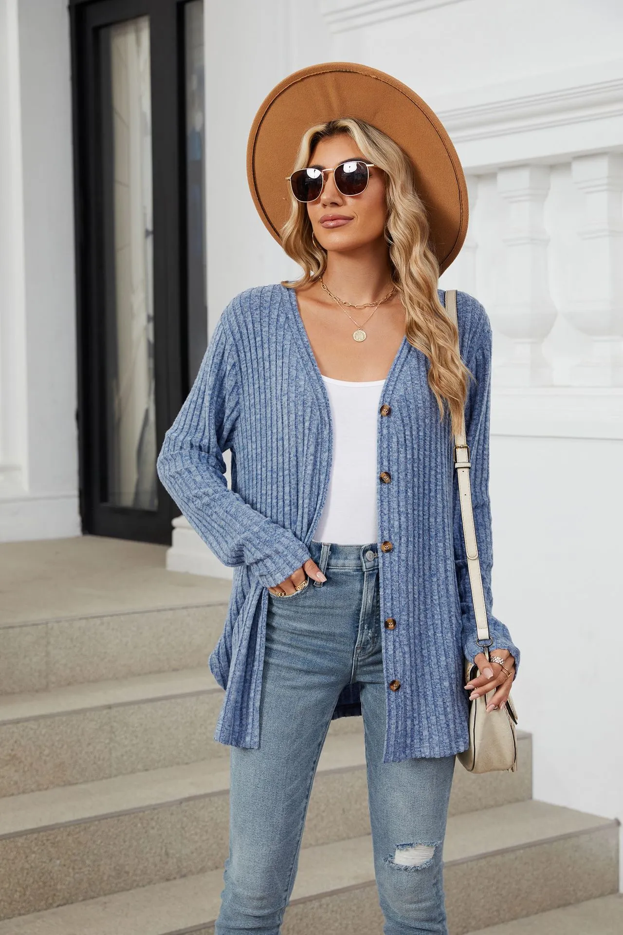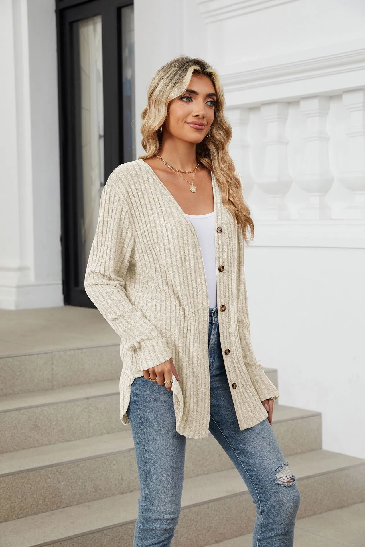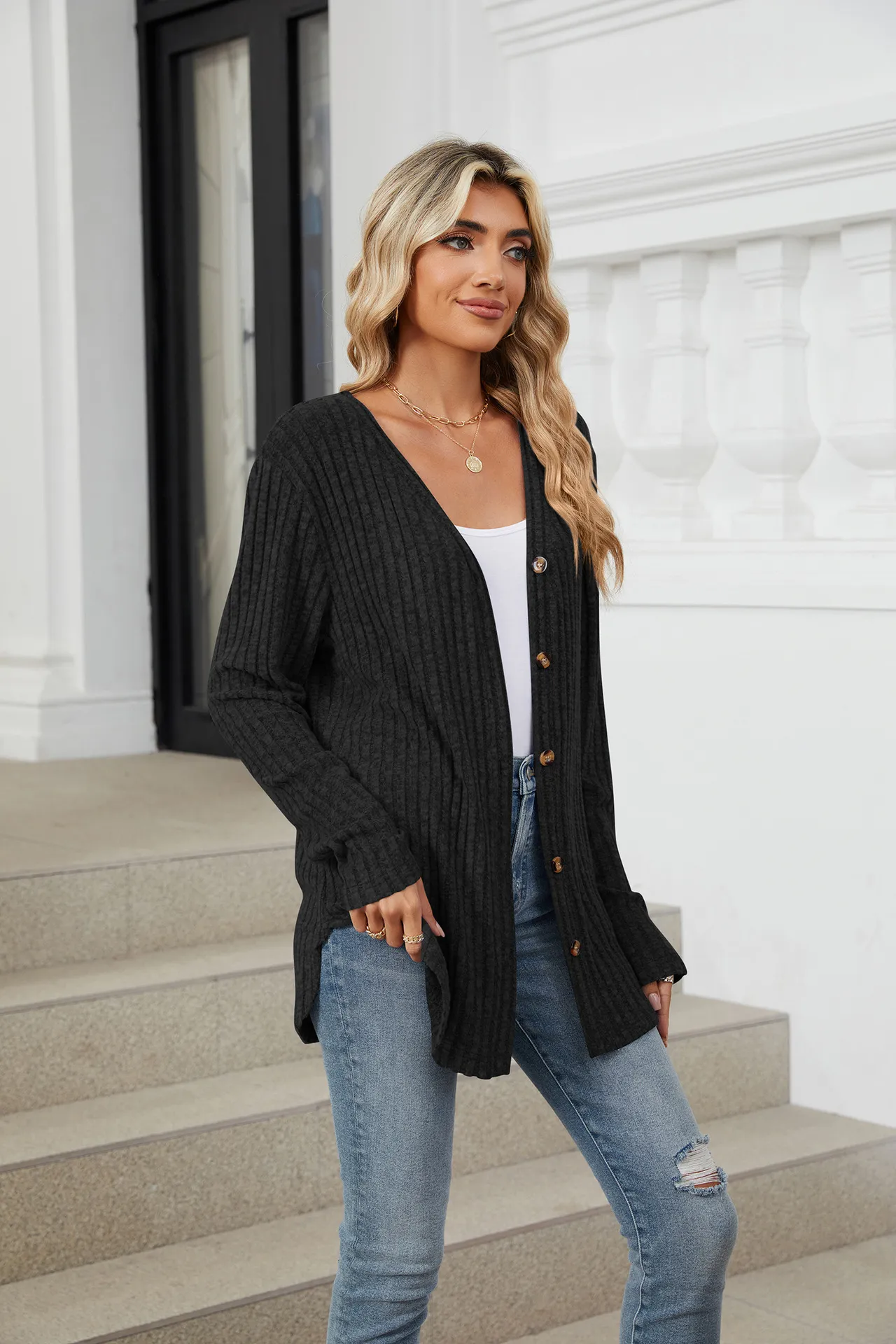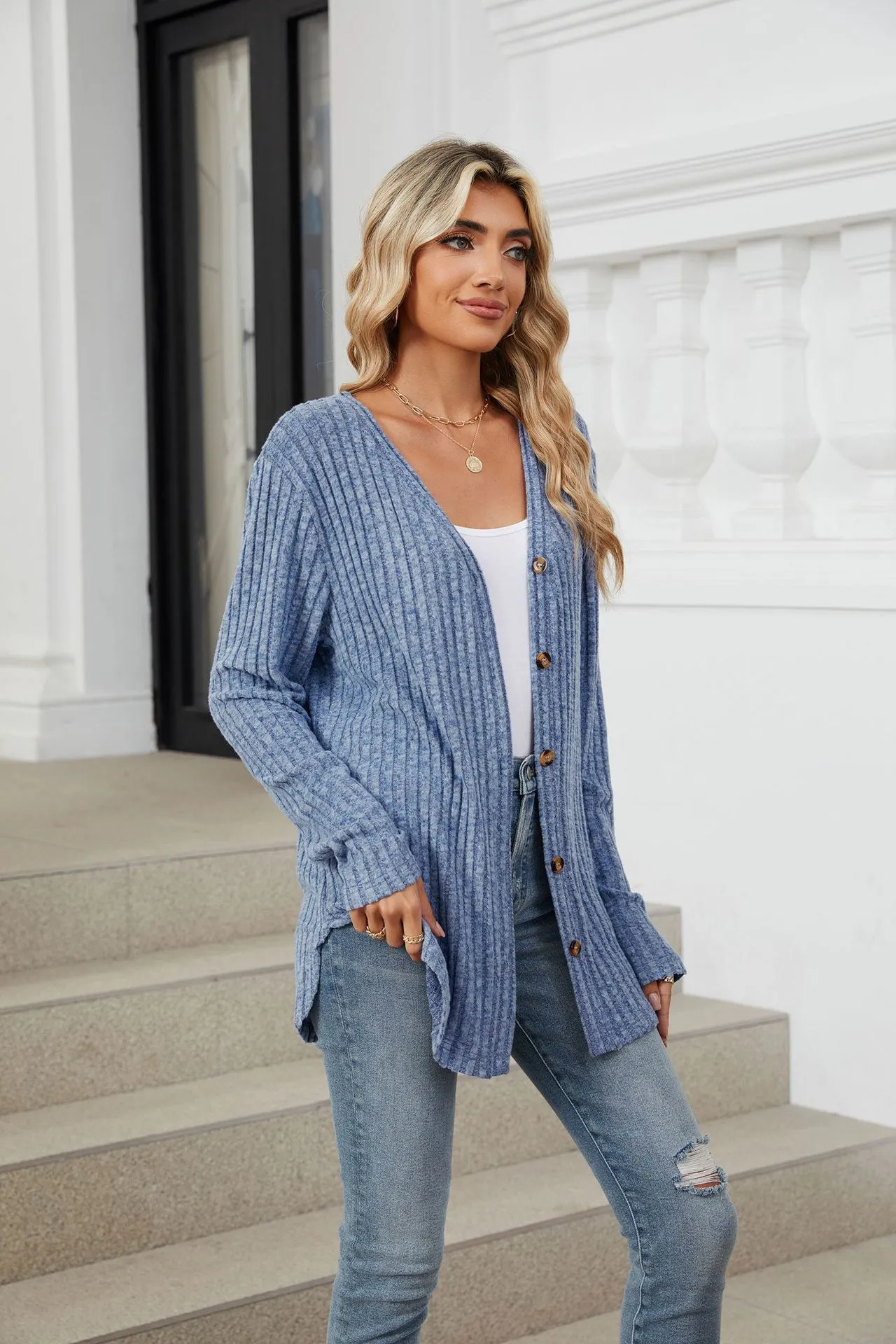 Home › Plants, Gifts, Toys & More › Gift-tree-solid-color-long-sleeve-button-cardigan-knitted-and-emerized-coat