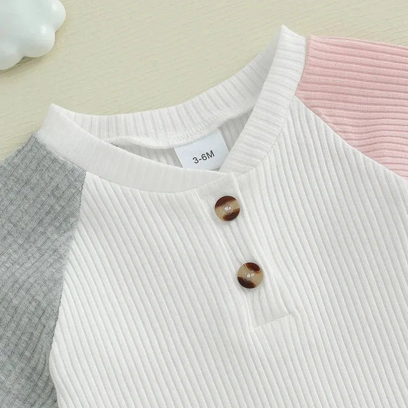 The standout feature of this suit is the color matching design, which combines different tones to create a fashionable and modern look. The solid colors in the ribbed fabric make it easy to mix and match with other pieces, offering a versatile outfit for any occasion. Whether your child is dressing for a family outing or a casual day at school, this suit ensures they look stylish and trendy.