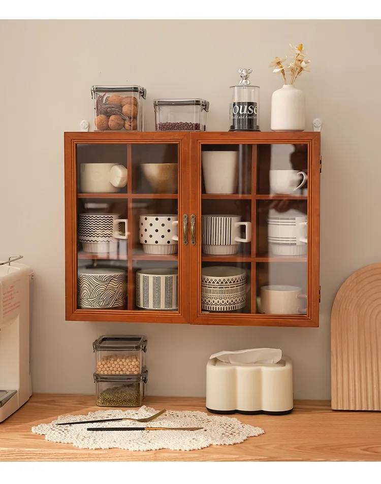 With its vintage design, the Solid Wood Desktop Cup Storage Cabinet Display Stand exudes classic charm and sophistication. Its simple yet elegant appearance fits perfectly in various settings, from kitchens and dining rooms to living rooms and offices. The rustic finish and clean lines of the stand will complement a variety of home decor themes, adding an antique flair to your space while providing practical storage.