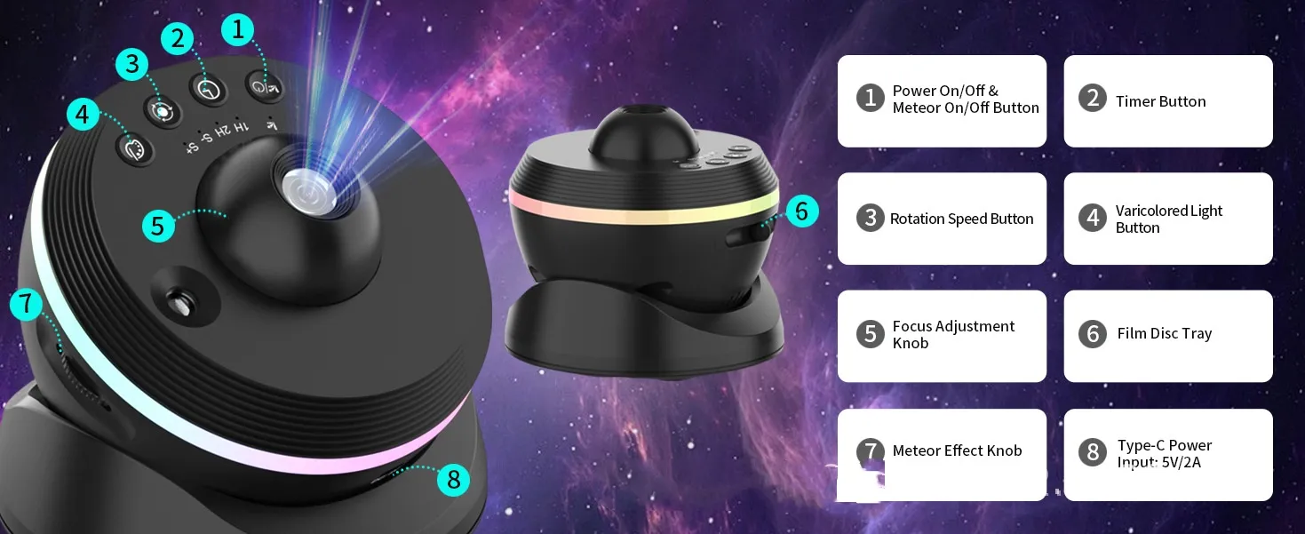 - Enjoy the Show: Let the meteor shower and starry sky projections fill your room with beauty and ambiance.