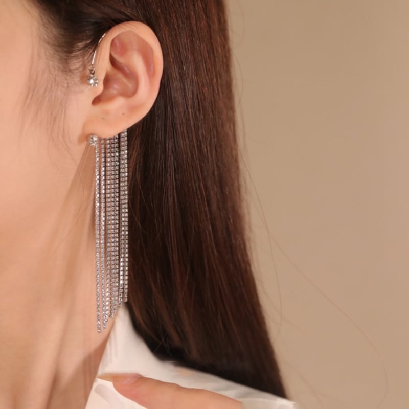 - 1 Pair x Sparkling Diamond Tassel Earrings
