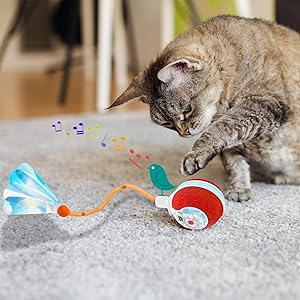 - Chirping Entertainment: Entice your cats with realistic bird songs that mimic the sounds of their natural prey. The chirping function can be turned off with a double press of the button, and thecat toys interactive gears are easy to clean to keep the interactive play going strong. Ideal for stimulating your cat's hunting instincts indoors.