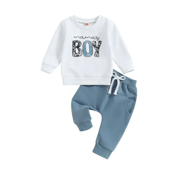 The standout feature of this outfit is the letter and floral print on the pullover. The combination of bold letter graphics and floral accents creates a unique, sporty yet trendy look that boys will love. The print brings an element of fun and personality to the outfit, making it perfect for school days, playdates, or sports practice.