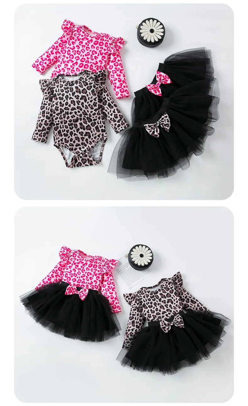 Spring and Autumn Women's Leopard Print Flounced Sleeve Mesh Princess Dress 2-piece Set – Chic, Stylish, and Perfect for Every Occasion