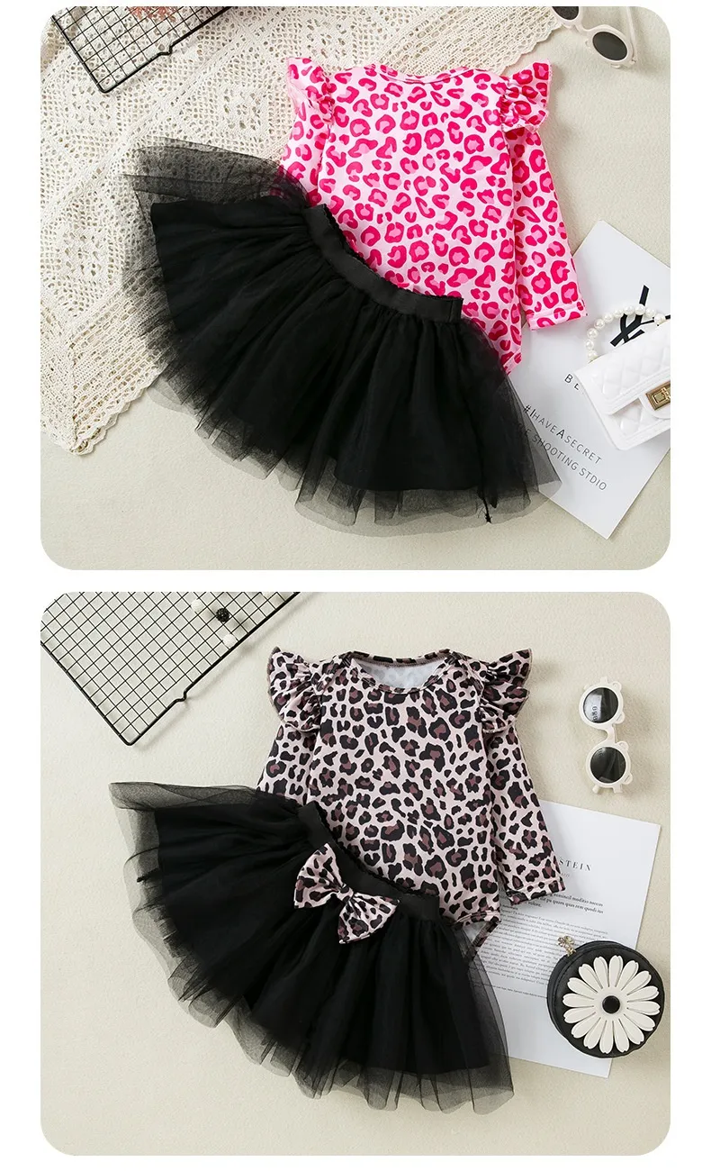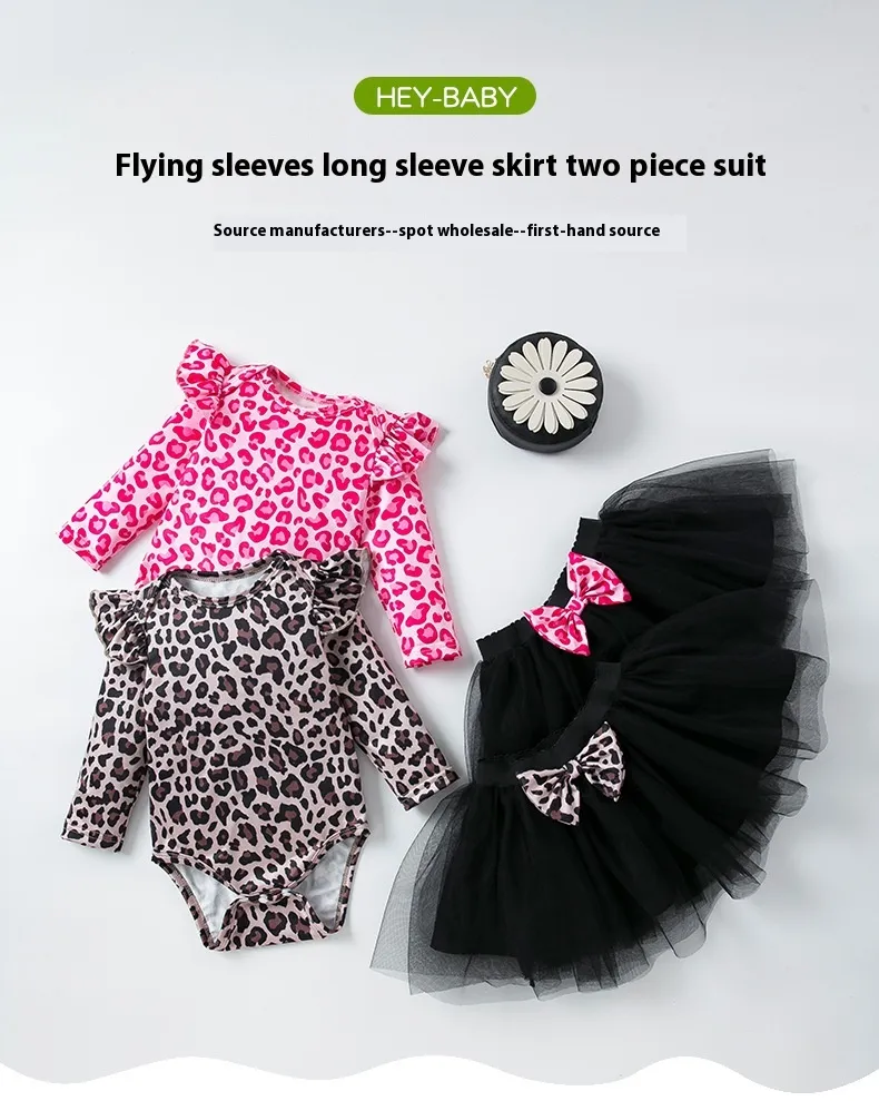 Spring and Autumn Women's Leopard Print Flounced Sleeve Mesh Princess Dress 2-piece Set – Chic, Stylish, and Perfect for Every Occasion