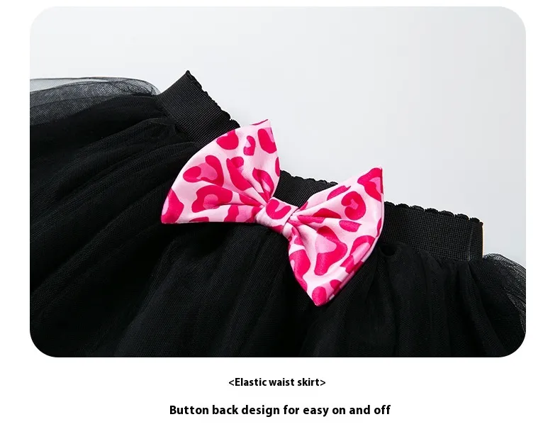 Spring And Autumn Women's Leopard Print Flounced Sleeve Mesh Princess Dress 2-piece Set