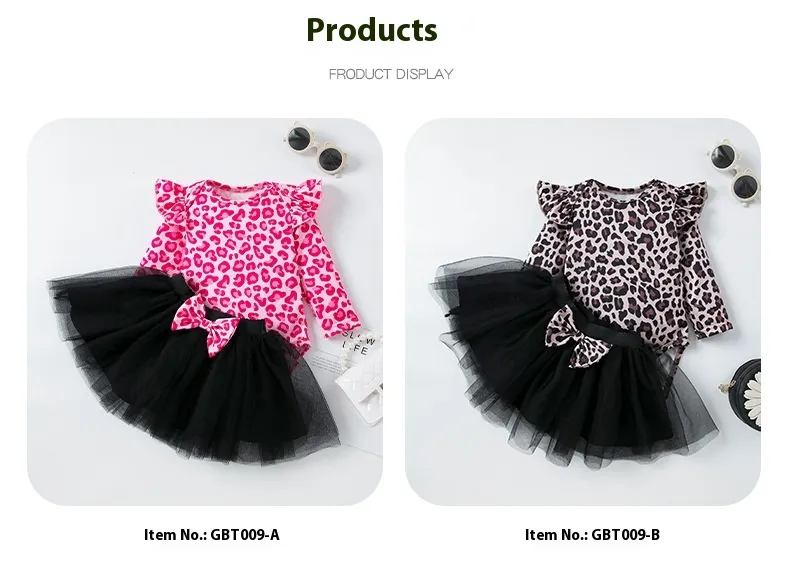 Key Features of the Spring and Autumn Women's Leopard Print Flounced Sleeve Mesh Princess Dress 2-piece Set
