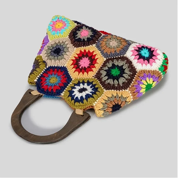 The vibrant yet harmonious color contrasts create a visually striking effect, enhancing the bag's overall appeal. The combination of bold and neutral tones ensures versatility with any outfit.