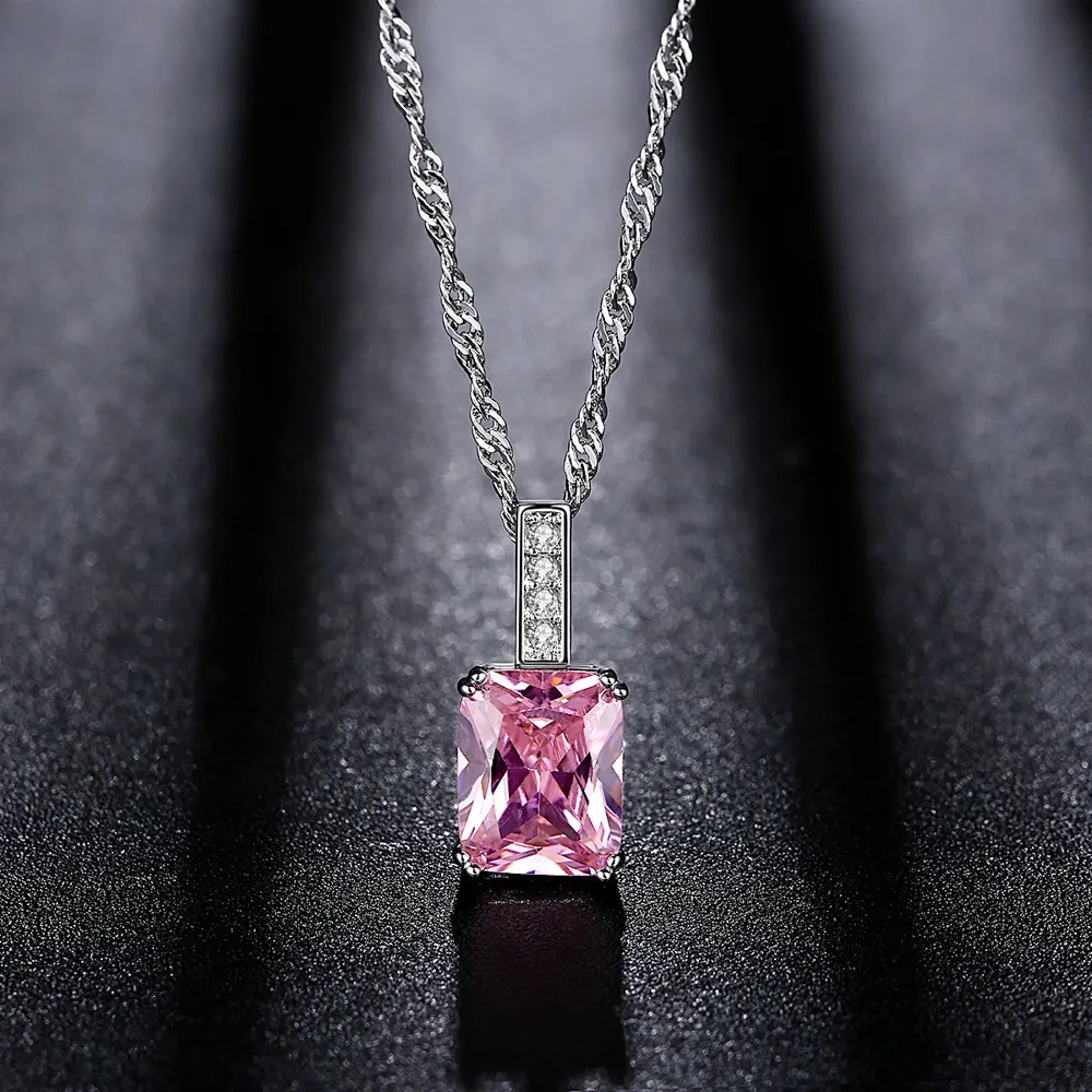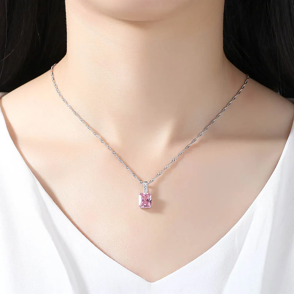 Square Zirconium Micro Inlay Pendant Necklace