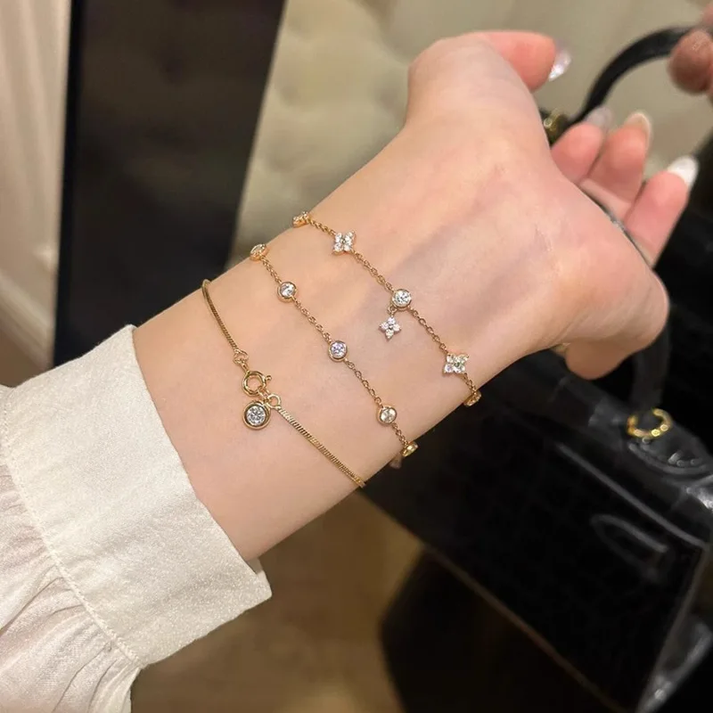 At the heart of the bracelet is a sparkling zircon charm that adds just the right amount of shine and sparkle. Zircon stones are known for their brilliance and clarity, replicating the appearance of diamonds at a more affordable price point. The zircon charm enhances the bracelet's overall elegance, catching the light beautifully and making it a stand-out accessory.