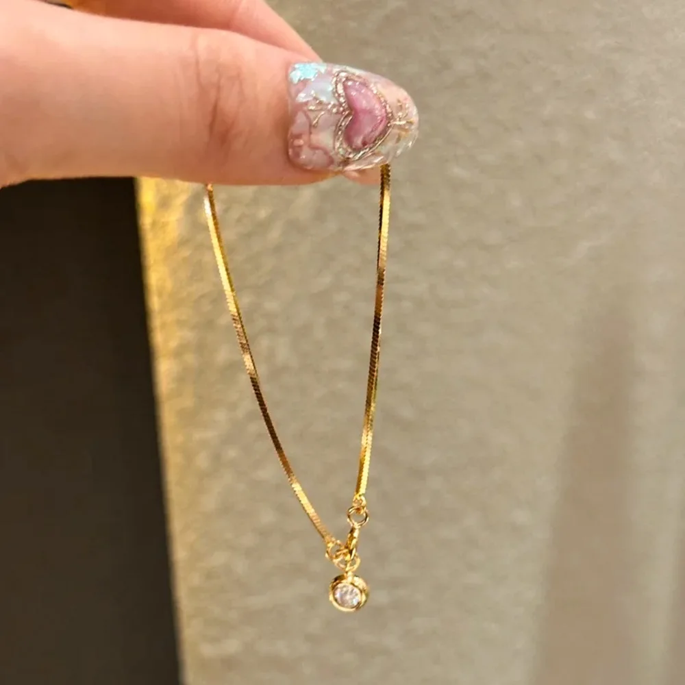 The minimalist design of the bracelet makes it a versatile accessory that can be worn with almost any outfit. The clean, simple lines of the blade chain are complemented by the sparkling zircon charm, creating a piece that is both contemporary and timeless. Its understated elegance makes it suitable for a wide range of occasions, from casual outings to more formal events.