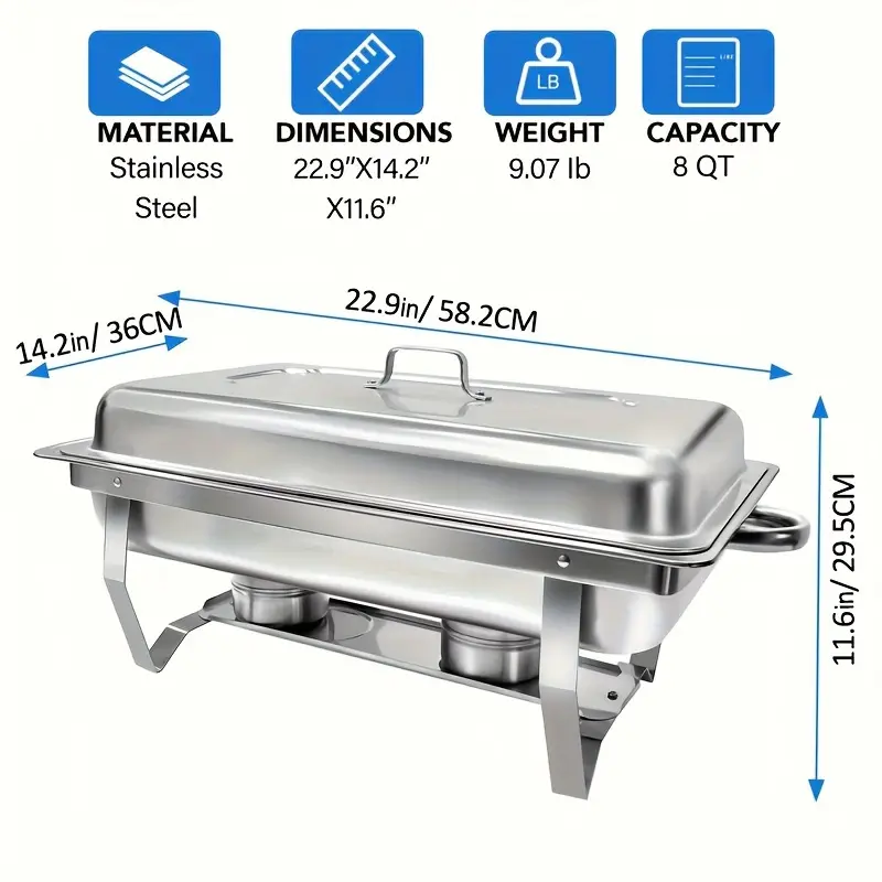 - Capacity: 8QT per chafing dish, suitable for large servings