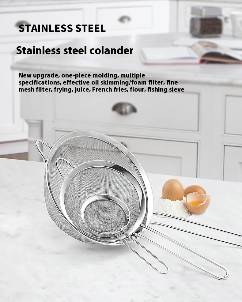 The Stainless Steel Fine Mesh Filter offers an ideal combination of durability, functionality, and ease of use. Whether you're brewing your favorite tea, straining sauces, or filtering fine particles from liquids, this filter provides precise and effective results. The high-quality stainless steel construction ensures long-term reliability, and its ergonomic handle makes it easy to handle for both small and large tasks. Perfect for both professional kitchens and home use, this filter ensures consistent results every time.
