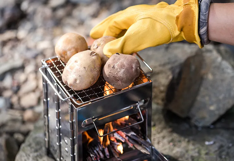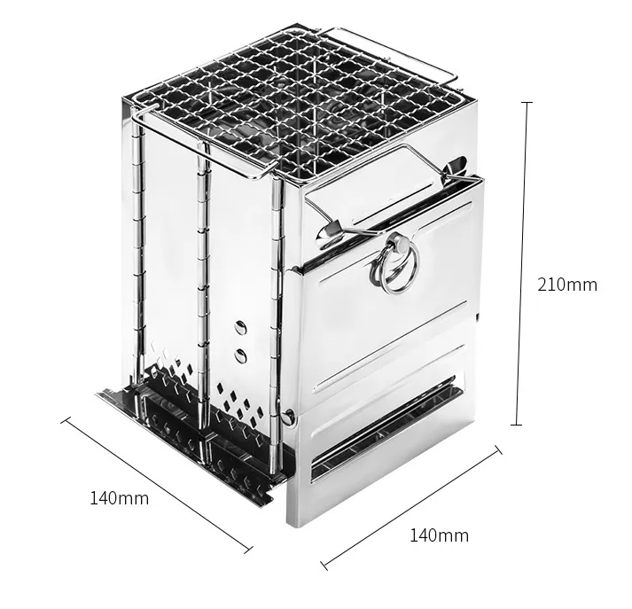 A stainless steel firewood stove is a compact, portable stove designed for outdoor camping and hiking that uses firewood as fuel. Its folding design makes it easy to carry, store, and set up, offering a reliable heat source and cooking platform in the wilderness.