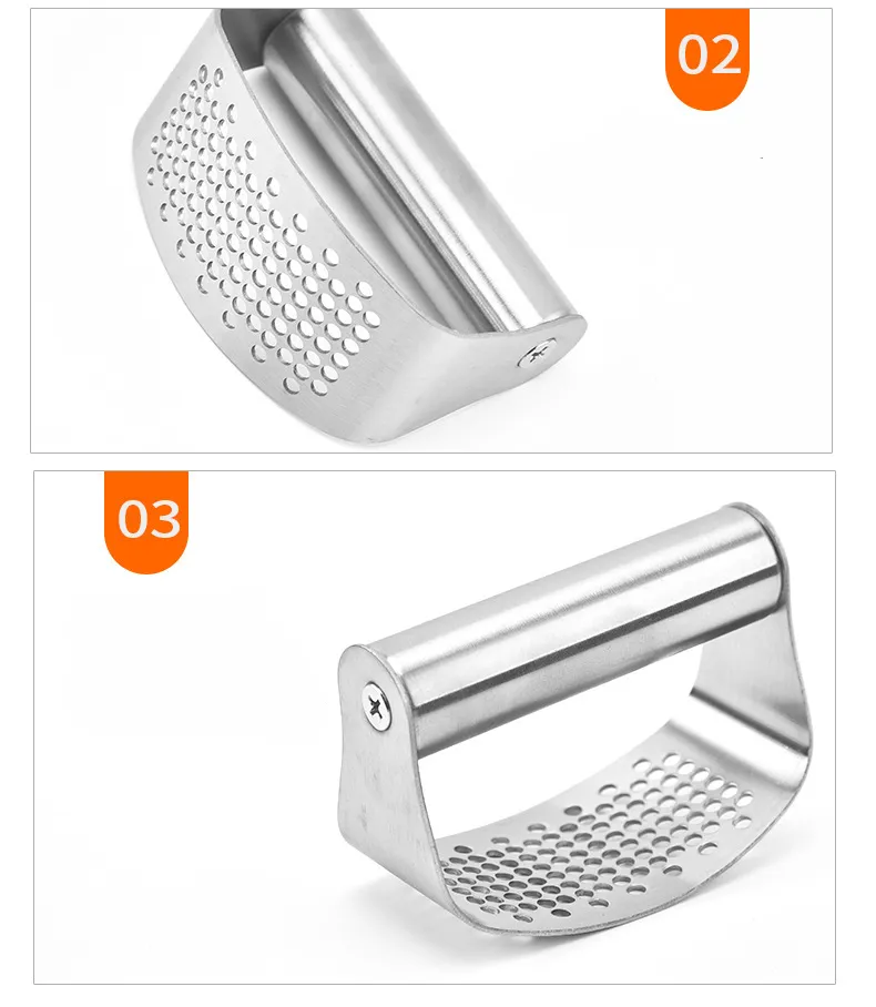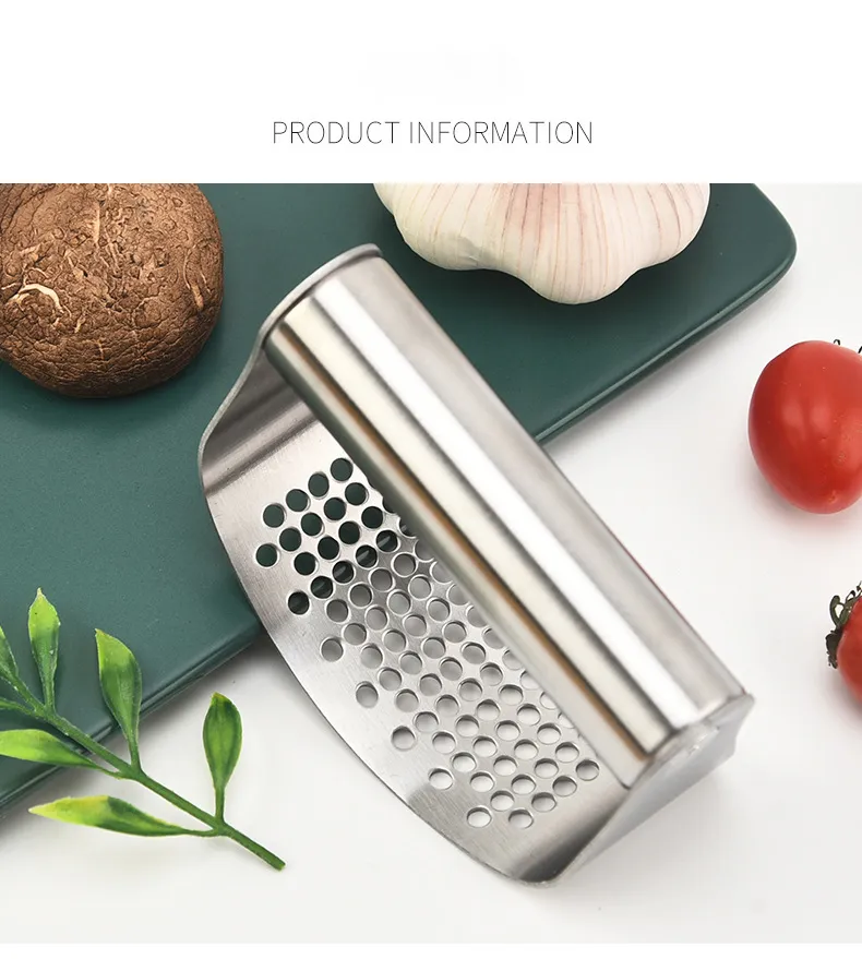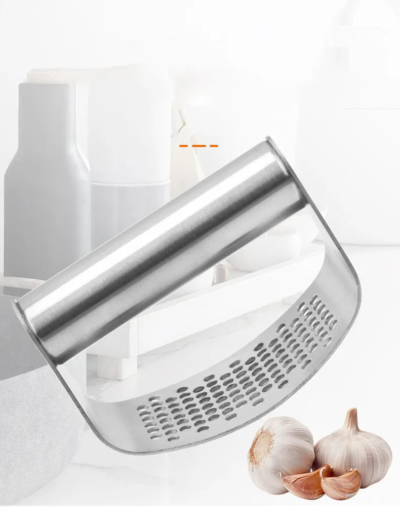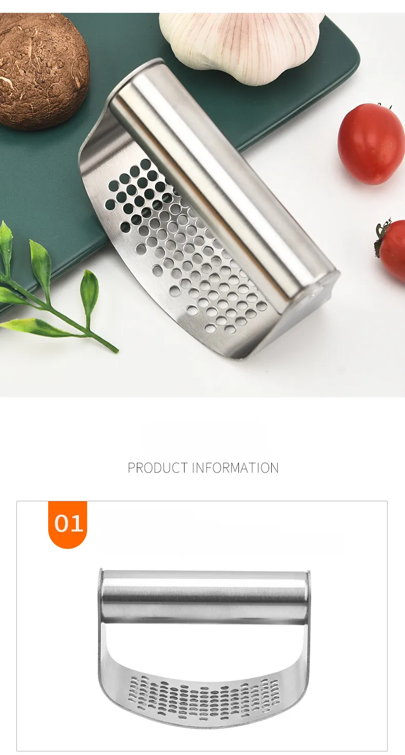 A stainless steel garlic press with a silicone peeler offers a sleek, durable, and efficient solution for quickly crushing and peeling garlic. Whether you're an avid cook or simply enjoy adding fresh garlic to your meals, this tool combines the two essential tasks—crushing and peeling—into one easy-to-use kitchen gadget. The manual curved design provides an ergonomic grip for maximum comfort and control, while the silicone peeler allows you to effortlessly remove garlic skins without the mess.