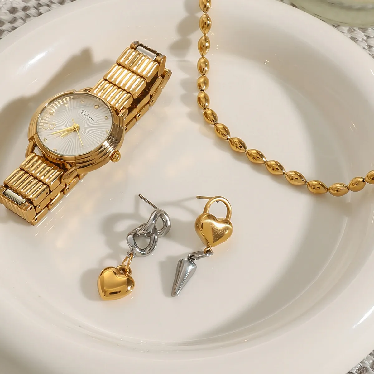 Home › Plants, Gifts, Toys & More › Gift-tree-stainless-steel-gold-and-silver-color-matching-heart-cone-chain-love-heart-earrings