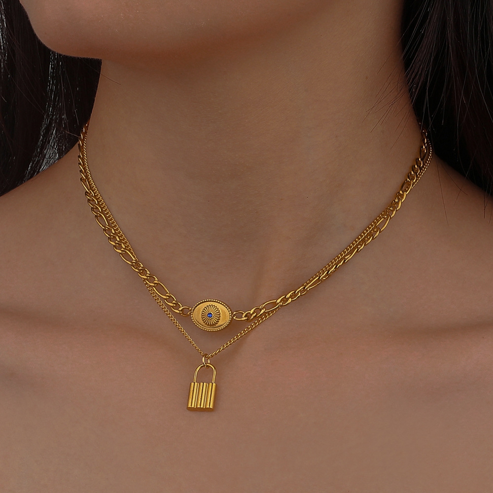 Stainless Steel Golden Eye Padlock Pendant