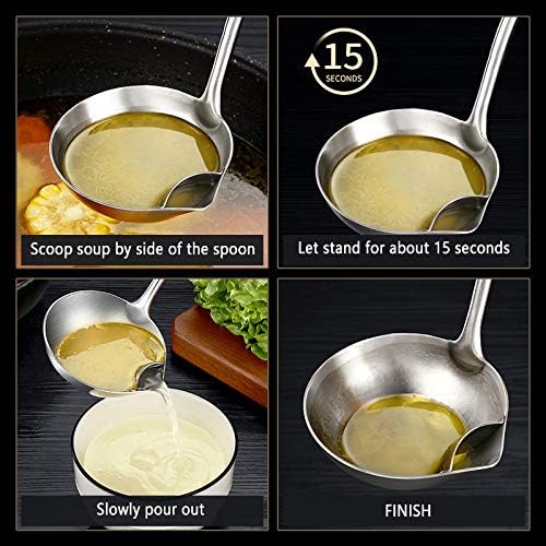 【Multipurpose spoon design】: This fat Separator Soup Ladle can not only be used as a traditional soup ladle, but also as a fat separator. During use, the soup juice flows out from the small hole to separate the fat from the soup. A good gravy separator for Drink clear soup and eat healthier.