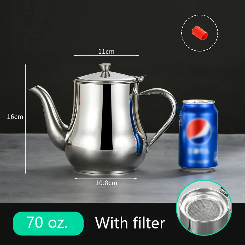 Stainless Steel Oil Filter Pot: The oil filter pot is dual-purpose, stainless steel oiler can be used to store oil, and filtering oil pot can also filter to separate grease from food, bacon fat container can also be used for tea kettle or kettles.High Quality Material: This oil dispenser with removable strainer and brush, stainless steel oil strainer is made of food grade stainless steel, which is durable. With cover, effectively isolate dust. 18/24/32/48/70oz 5 types capacity oil tanks are available.