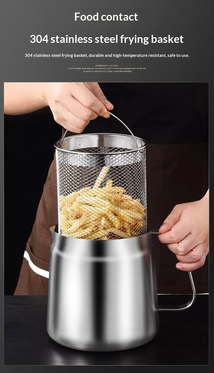 The fine mesh strainer in this pot effectively filters out food particles, debris, and impurities from oil, broths, or sauces. This ensures that you get clean, filtered liquids, whether you're saving oil for reuse or making a smooth broth. It’s perfect for anyone who enjoys cooking fried foods or preparing homemade stocks.