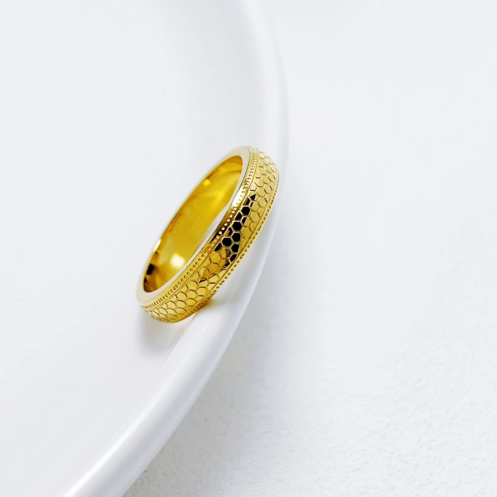 Stainless Steel Rings for Men and Women Gold Color 4mm Honeycomb Shape