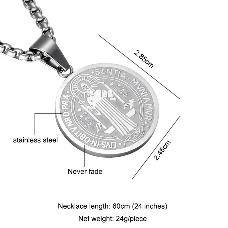 The Stainless Steel San Benito Necklace is also well suited as a gift for religious milestones such as baptisms, confirmations, anniversaries, or moments of spiritual significance. Its durability and symbolism make it a keepsake intended to last.