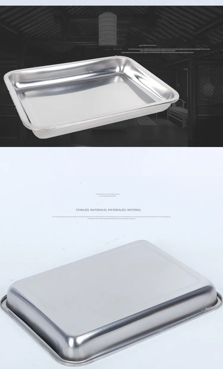 Stainless Steel Storage Trays Square Plate Thickening Pans Rectangular Tray Barbecue Deep Rice Dishes Bbq Kitchen Accessories