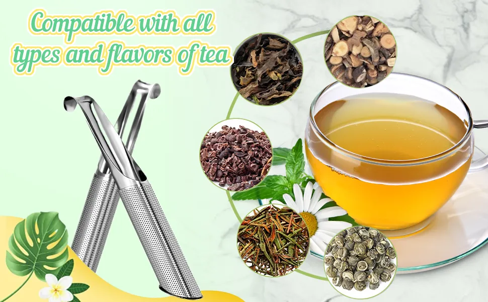 - 【Versatile Hook Design】Our tea infuser features a practical hook at the end, making it effortless to hang on various tea sets. Whether it's your cup, teapot, or mug, this hook ensures that the loose tea is fully diffused while steeping. The slim body not only adds an aesthetic touch but also provides ample space for the tea leaves to steep, resulting in a truly aromatic and flavorful cup of tea.