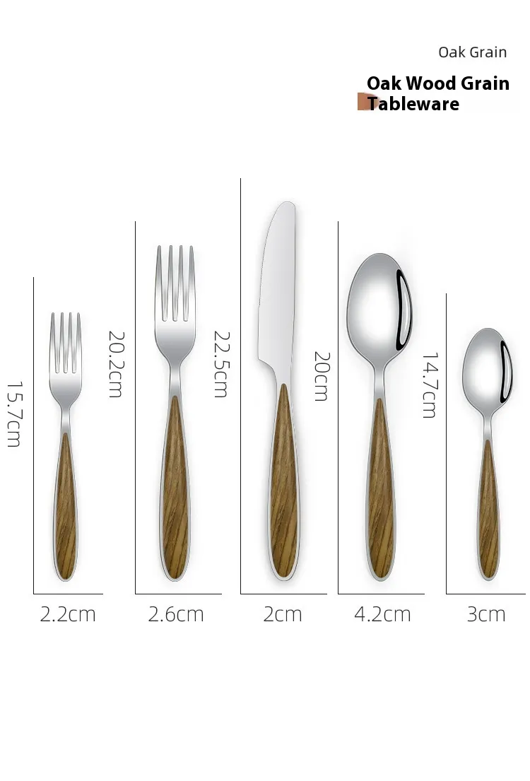 Color: oak wood grain main knife, oak wood grain fork, oak wood grain main spoon, oak wood grain auxiliary fork, oak wood grain auxiliary