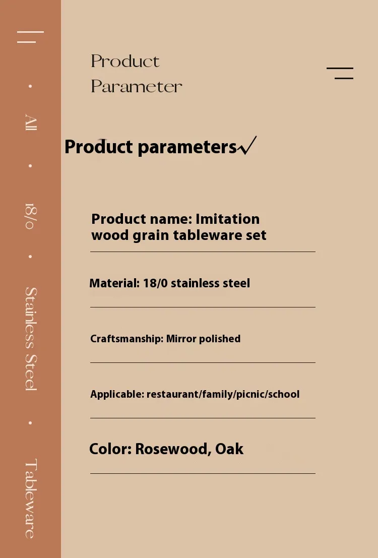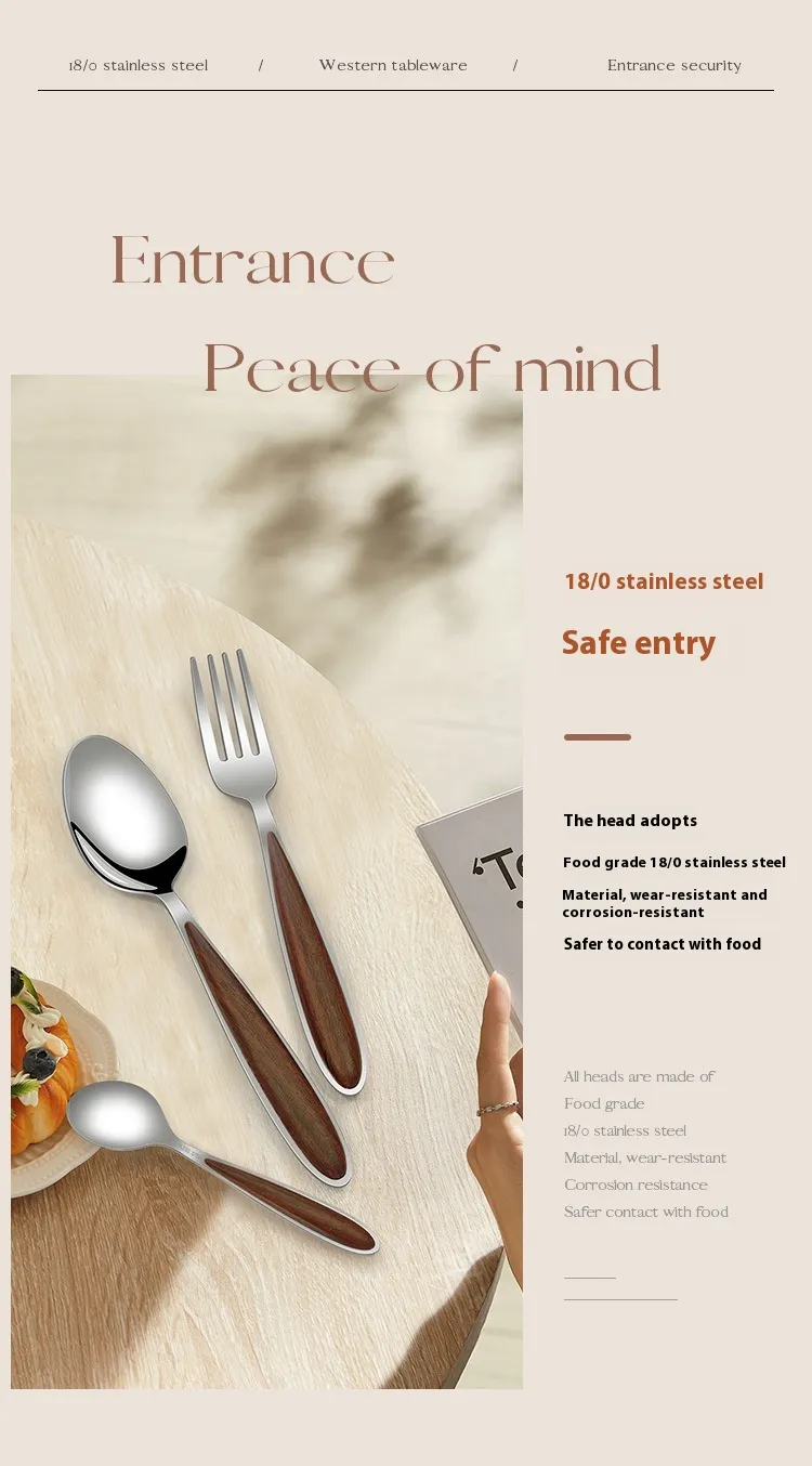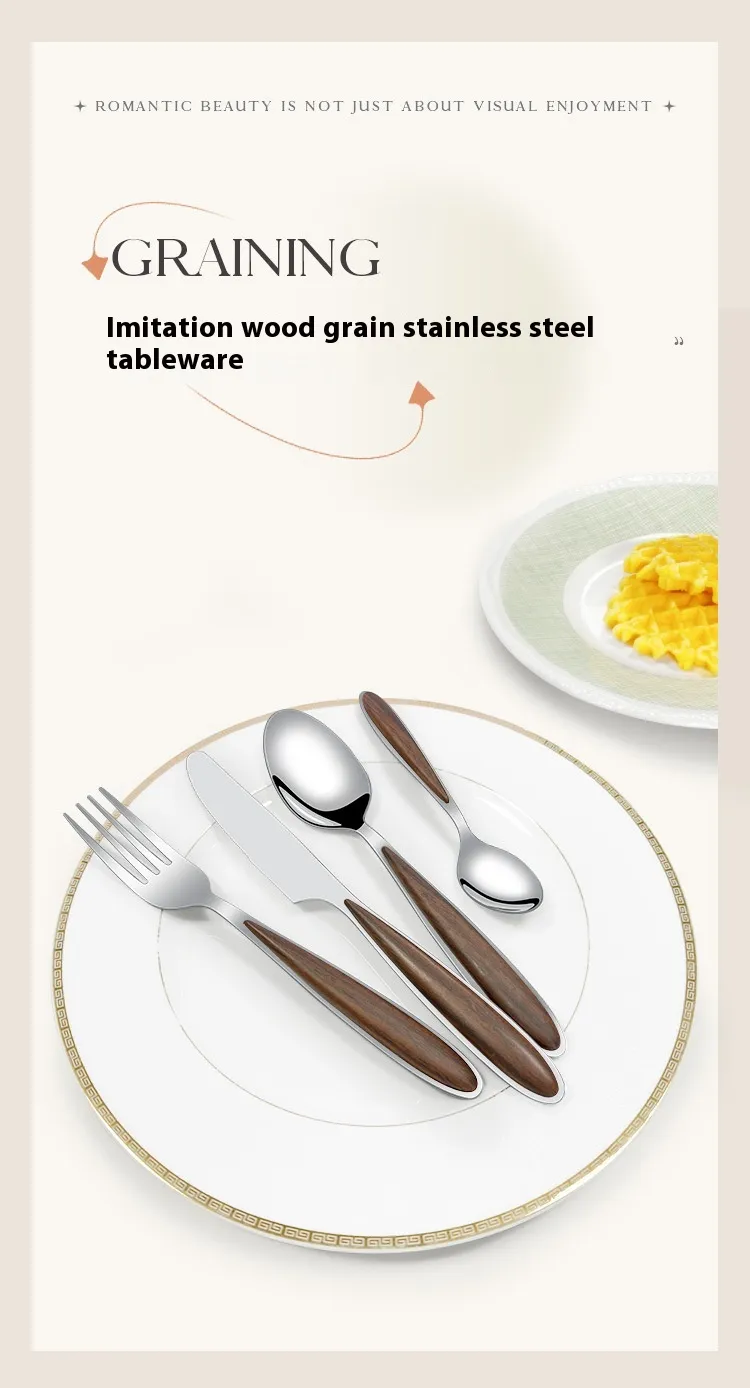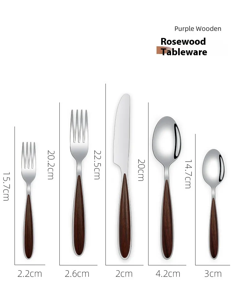 spoon, Rosewood grain main knife, Rosewood grain fork, Rosewood grain main spoon, rosewood grain fork, Rosewood grain spoon
