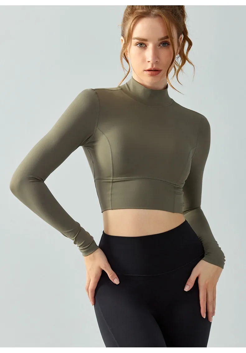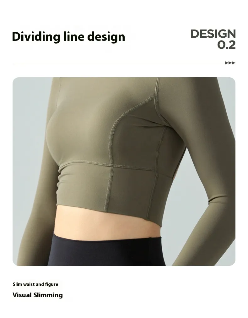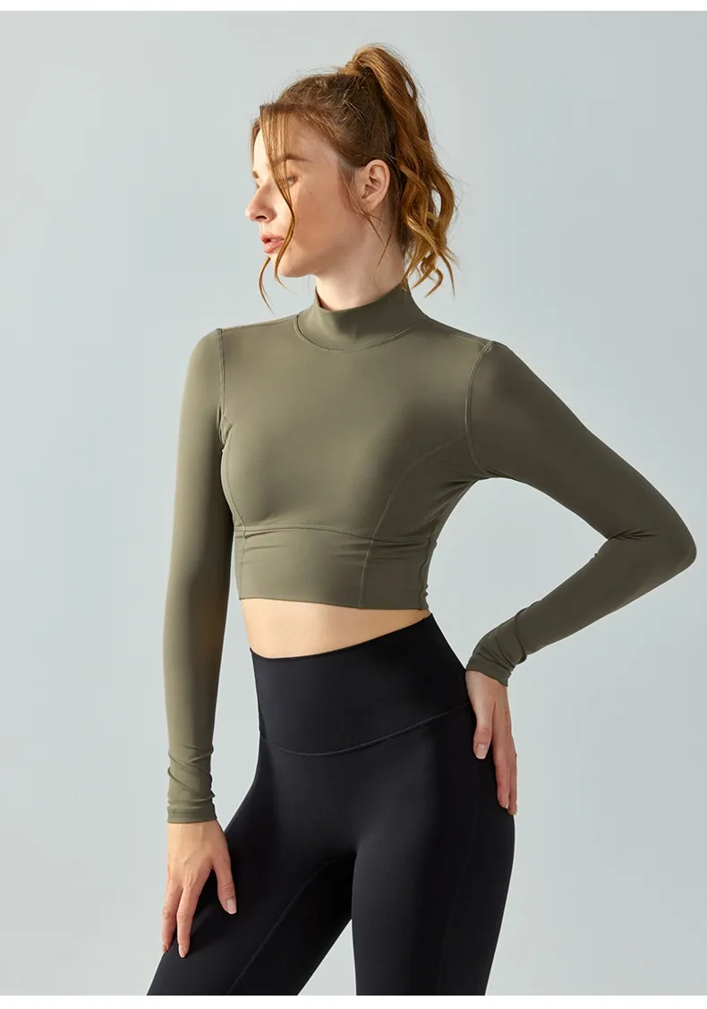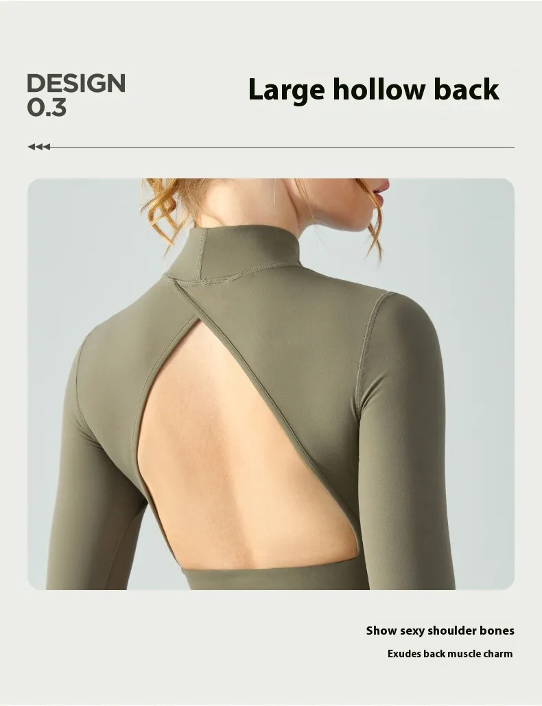 Stand Collar Fallwinter Yoga Wear Long Sleeve Women's Water Drop Semi-fixed Cup Hollow-out Beauty Back