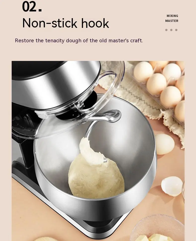 Whether you’re preparing dough for fresh noodles or mixing flour for a cake, this stand mixer is designed to handle the job. The strong mixing power ensures that your ingredients are evenly stirred and blended, giving you the perfect dough or batter for every recipe. Whether you’re making pasta, noodles, or bread, the mixer ensures that the flour is thoroughly incorporated for the best results.