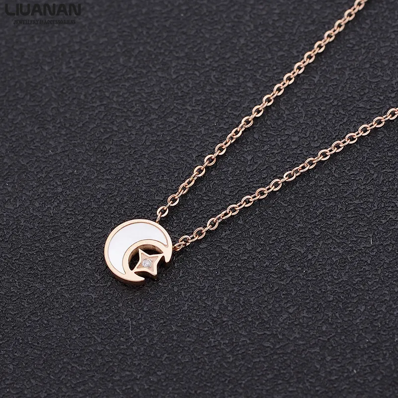 Star And Moon Series Titanium Steel Pendant Rose Gold Clavicle Chain