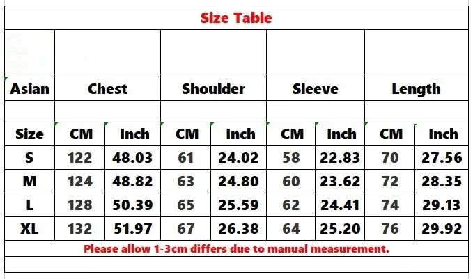 allow 2-3cm differences due to manual measurement.